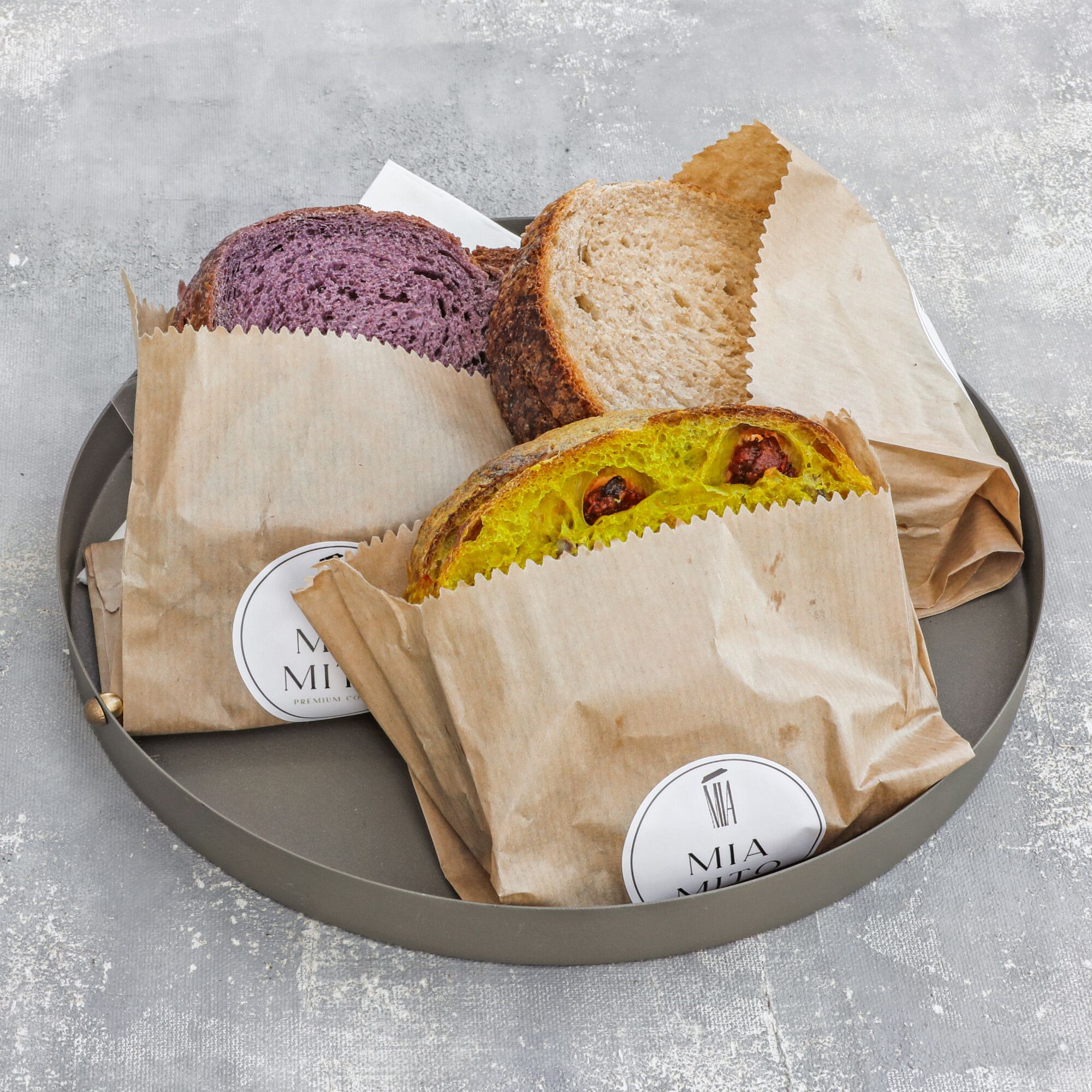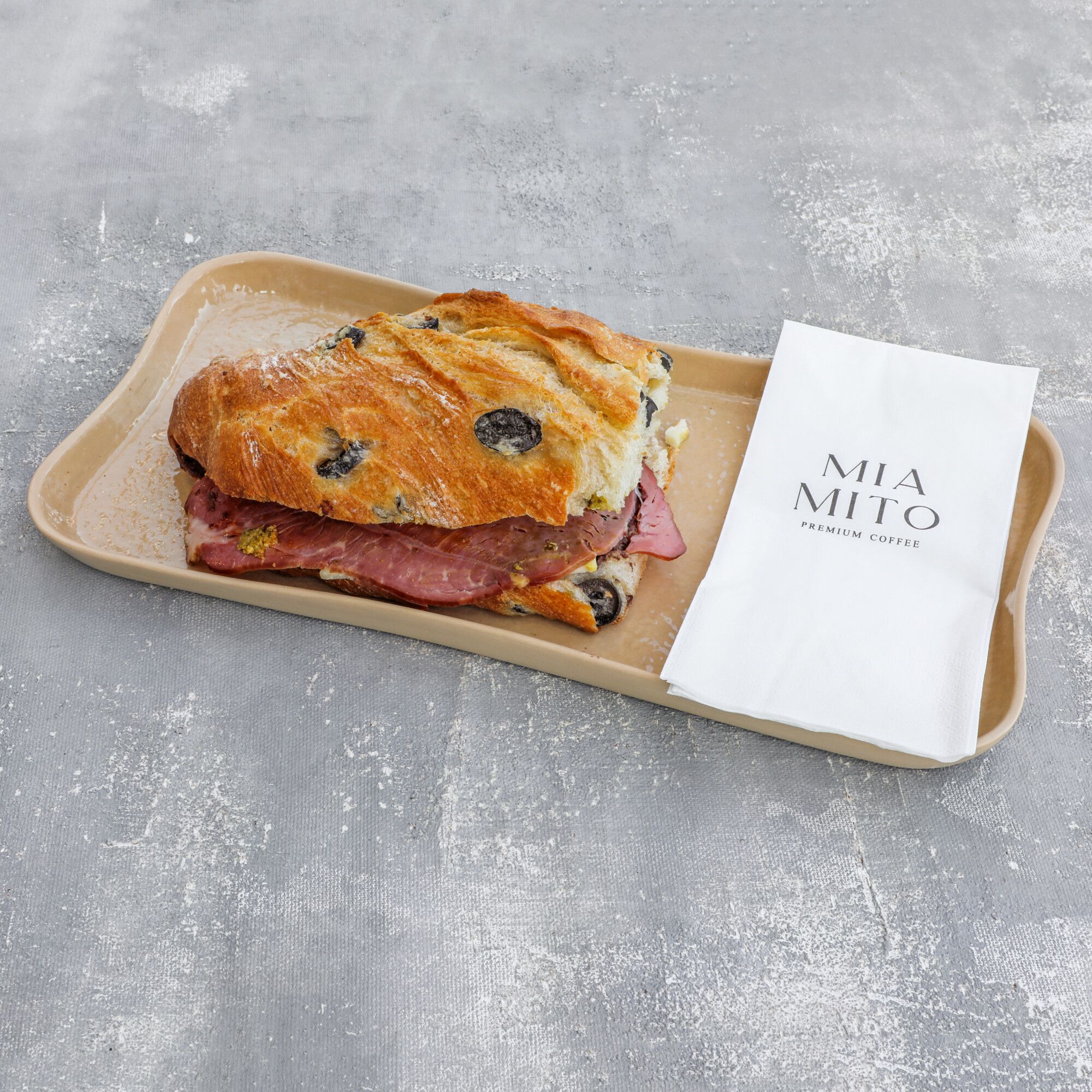Sarı buğday ekmeğine; krem peynir, zeytin ezmesi, kaşar peyniri, cheddar peyniri, hindi füme